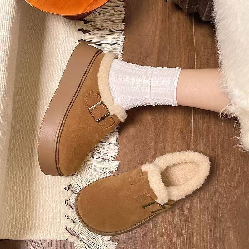 品牌断码复古棉鞋包头雪地靴女2026新款秋冬厚底增高外穿懒人一脚