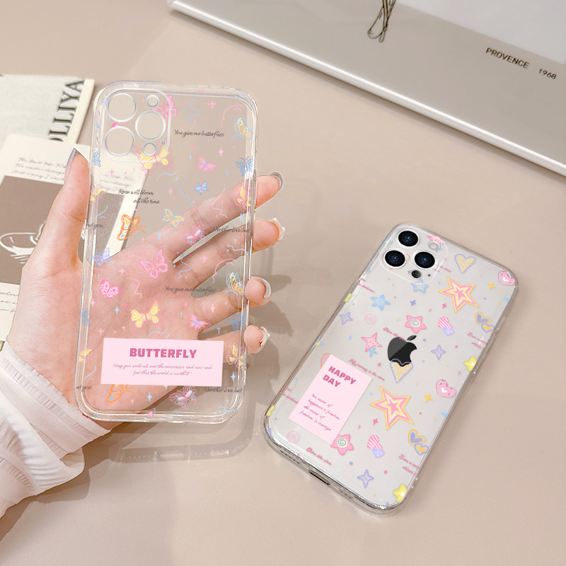 适用于苹果15手机壳16简约蝴蝶iPhone14promax防摔ip17全包11/12mini新款xsmax透明7/8p软se3硅胶6sp超薄xr