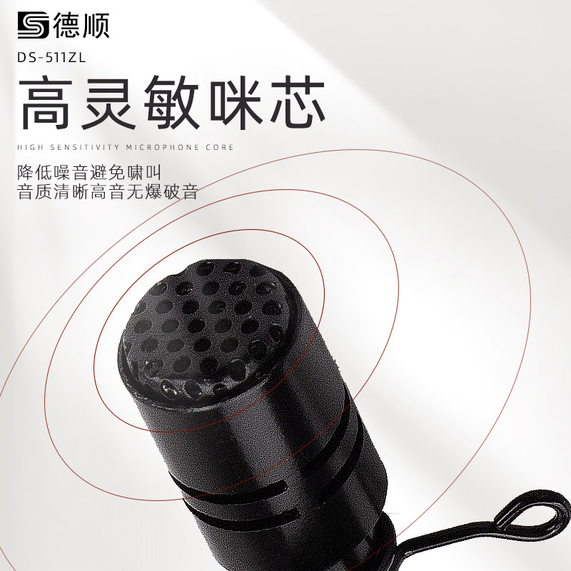 德顺511ZL小扩音器耳麦话筒领夹式教师教学专用有线麦克风小蜜蜂