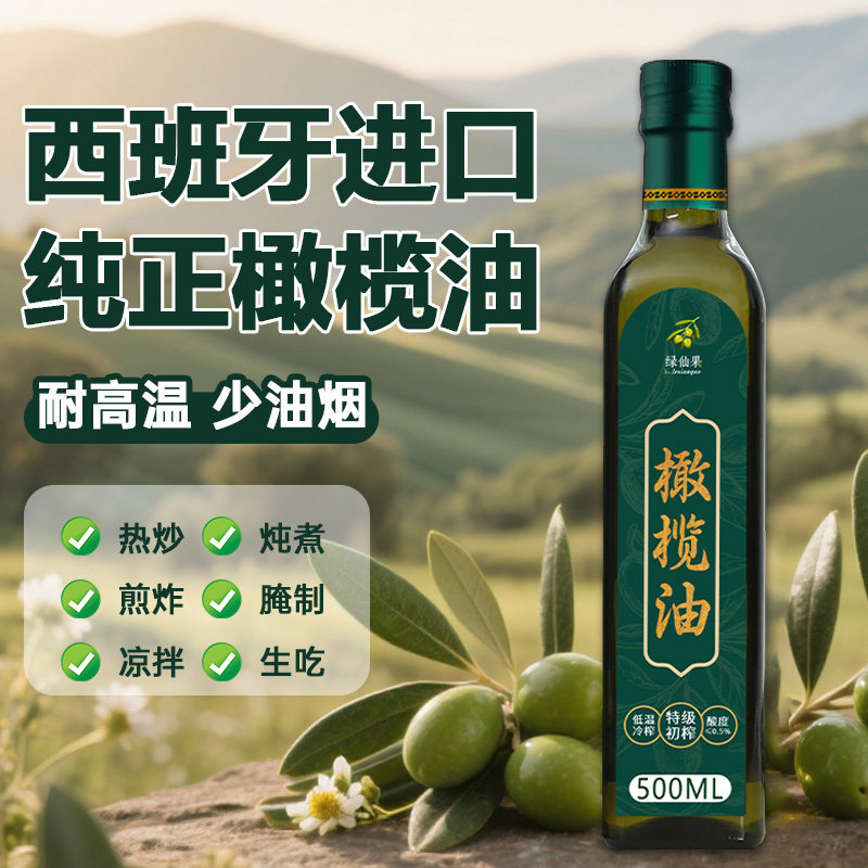 100%纯特级初榨橄榄油500ML礼盒装西班牙进口纯橄榄油家用食用油
