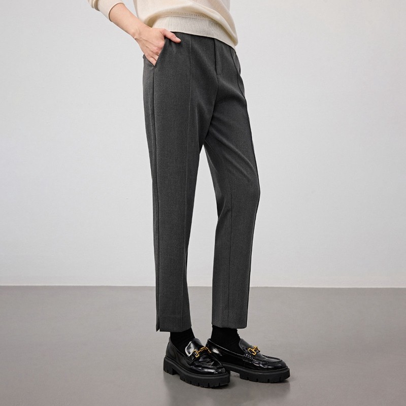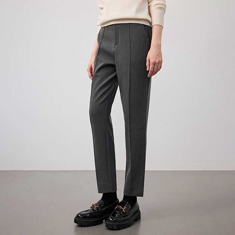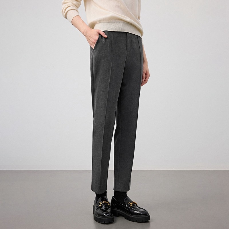 Navigare意大利小帆船灰色休闲锥形裤女秋季新款九分裤子商务西裤