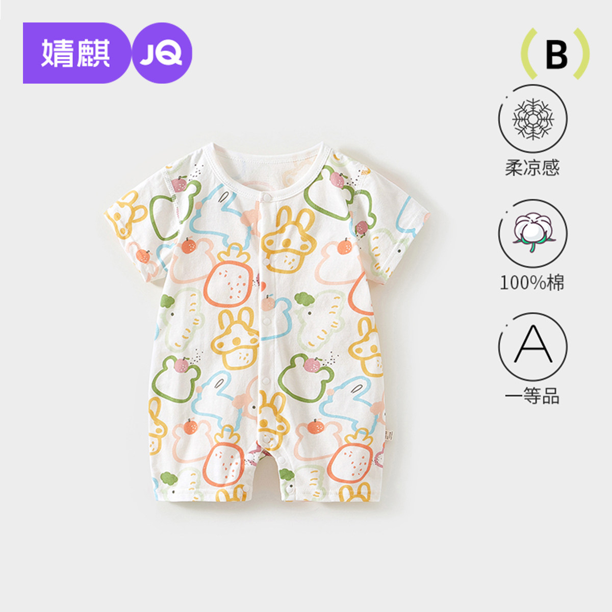 婧麒婴儿衣服夏装男女宝宝对开连体衣夏季薄款短袖空调服纯棉哈衣