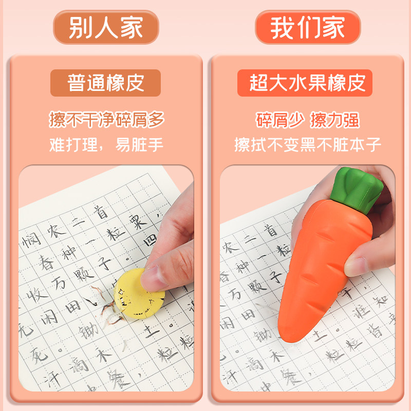 水果巨无霸橡皮擦胡萝卜草莓小学生儿童专用玩具象皮幼儿园无屑芒果像皮超大不留痕创意卡通可爱学习文具用品