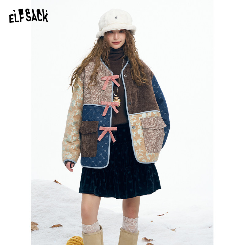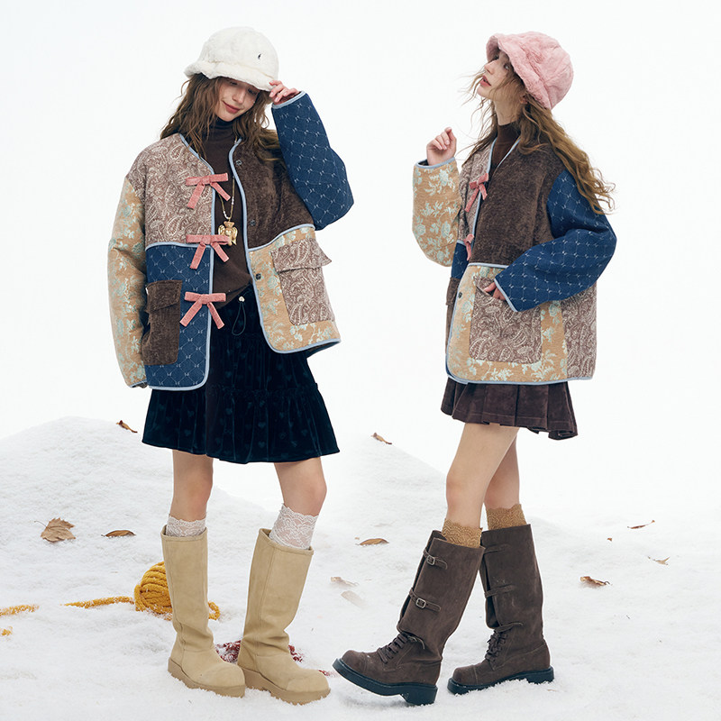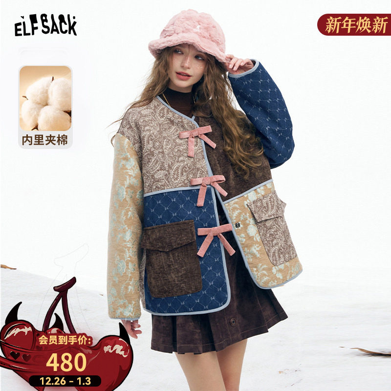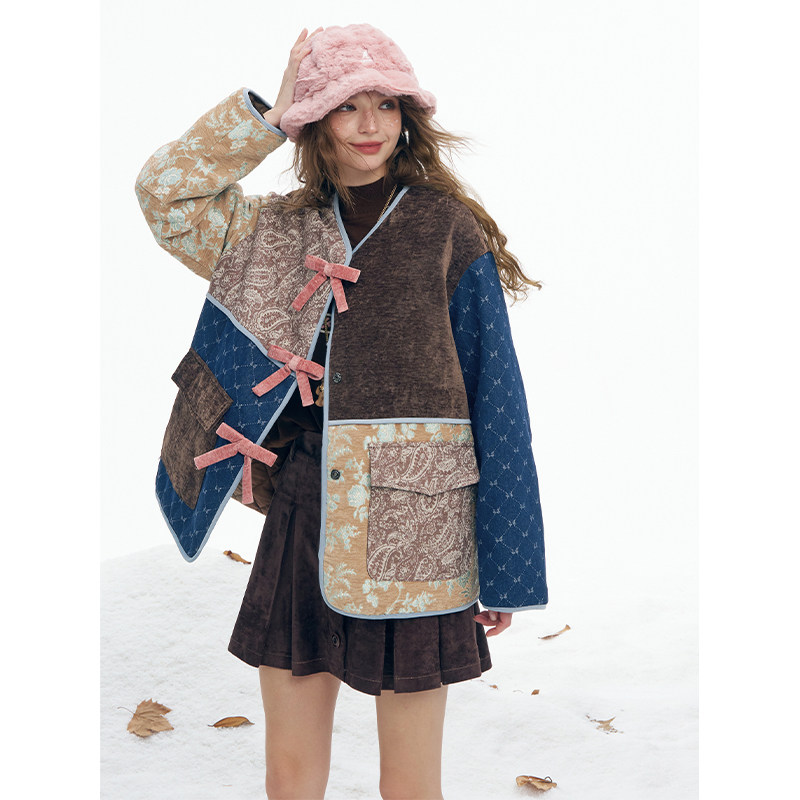 妖精的口袋腰果花拼接新中式棉衣女2025年冬季新款老钱风夹棉外套