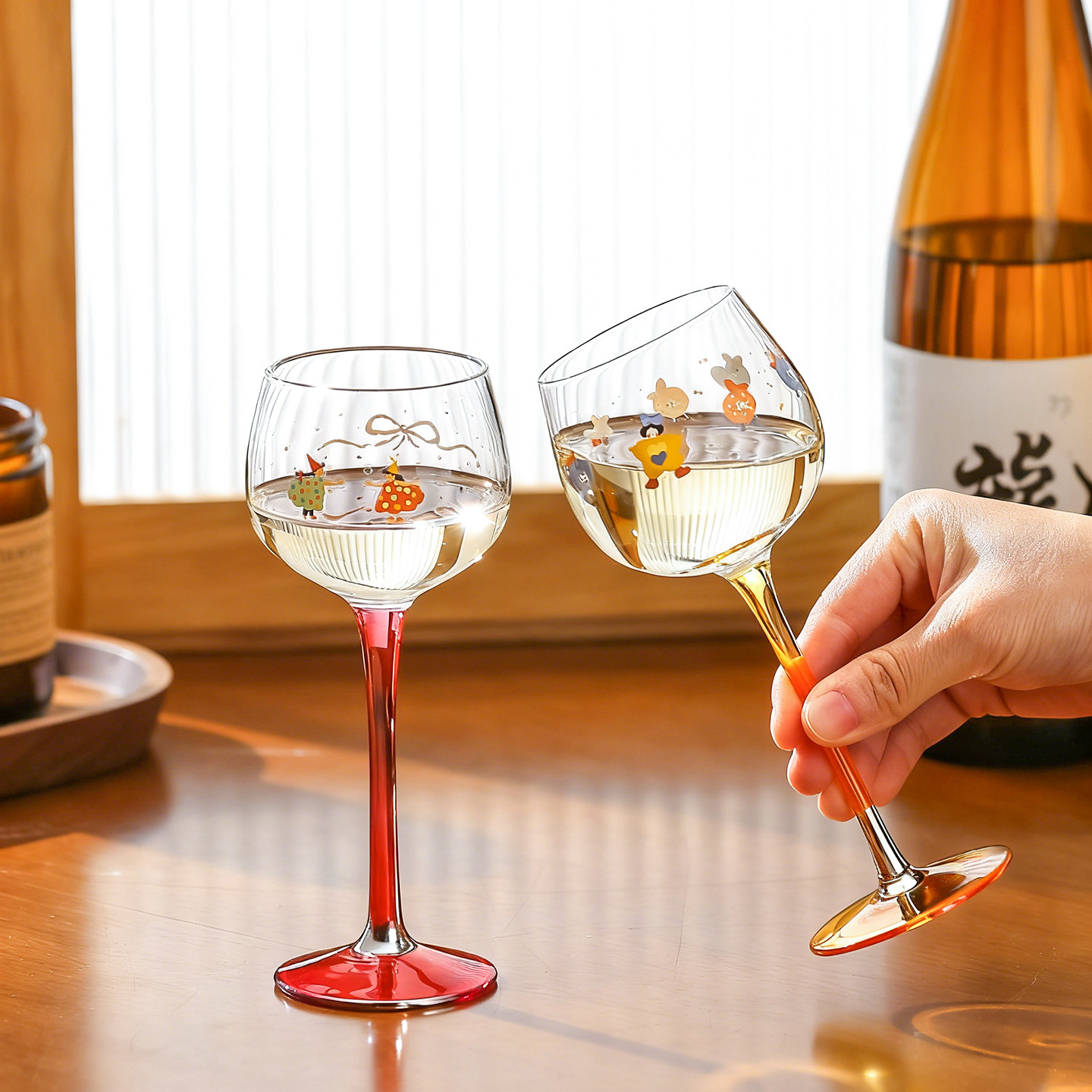 川岛屋水晶玻璃高脚杯红酒杯家用女生高颜值设计感葡萄酒甜酒杯子