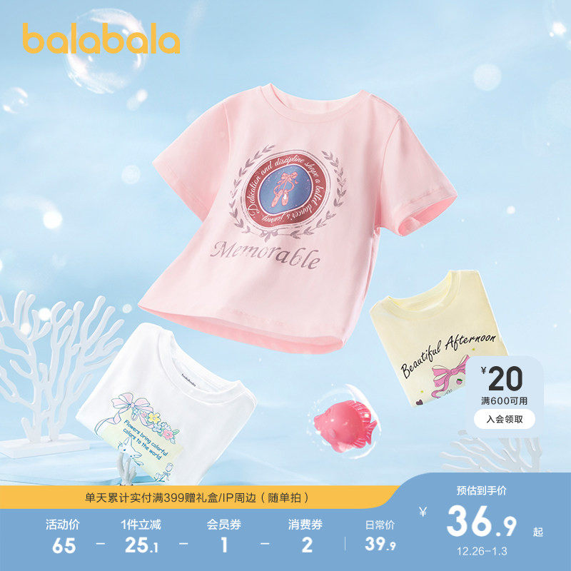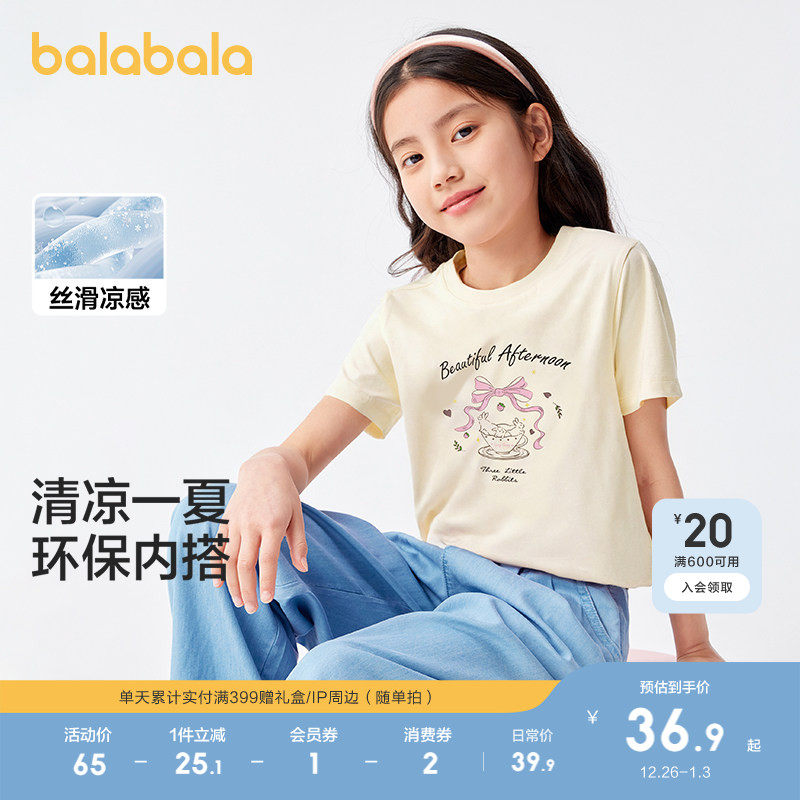 巴拉巴拉童装儿童短袖女童t恤2025春夏装中大童凉感甜美上衣潮