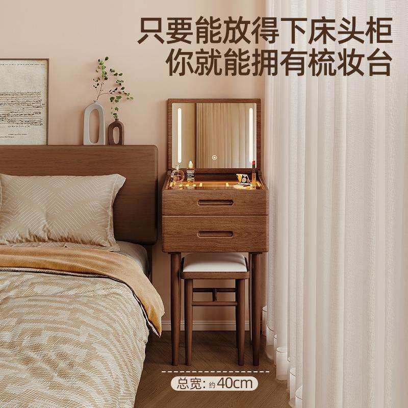 实木梳妆台小型卧室迷你极窄床头柜化妆台一体翻盖化妆桌镜小户型