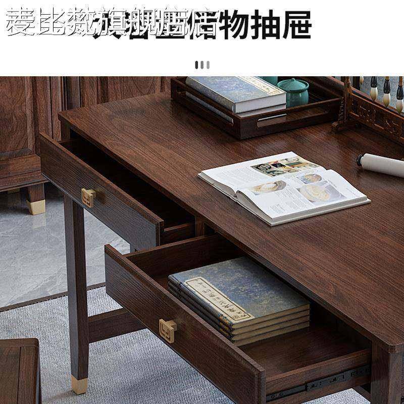 麦比梵新中式书房写字台全实木书桌家用禅意办公桌纯美式电脑桌书房家具床笠拉车