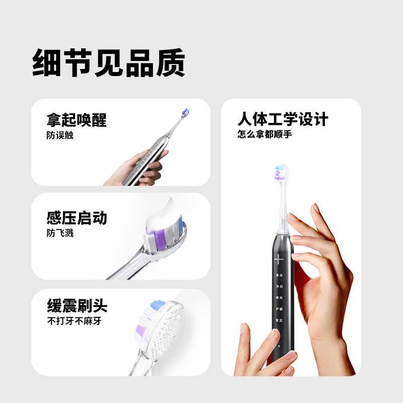 同同家电动牙刷柔频宽幅护龈 智能全自动成人男女士礼盒装礼物T9P