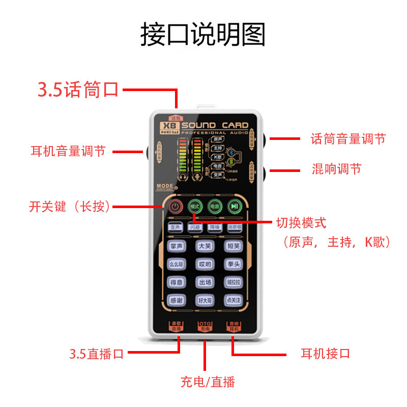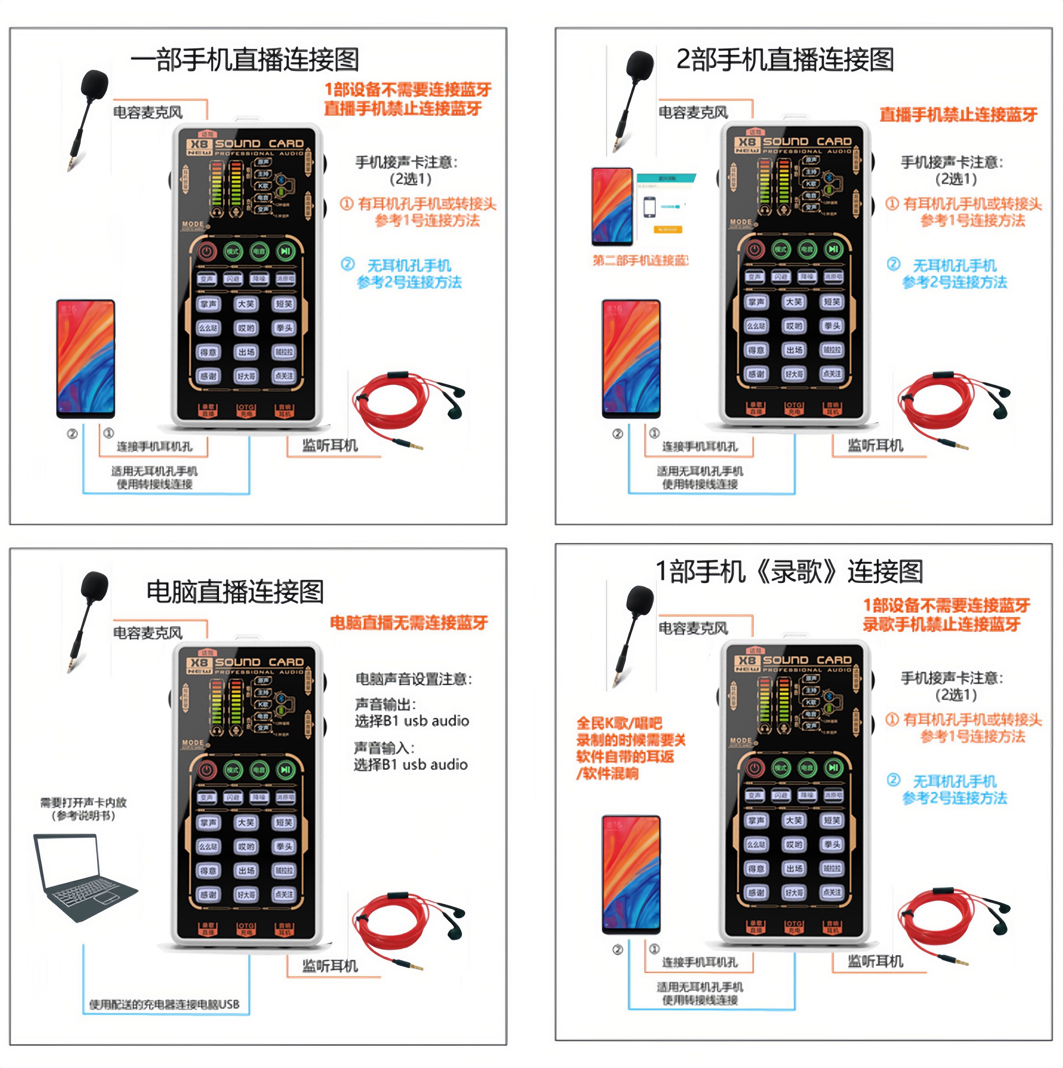 手持声卡手机便携户外直播唱歌专用录音变声配音专用抖音同款