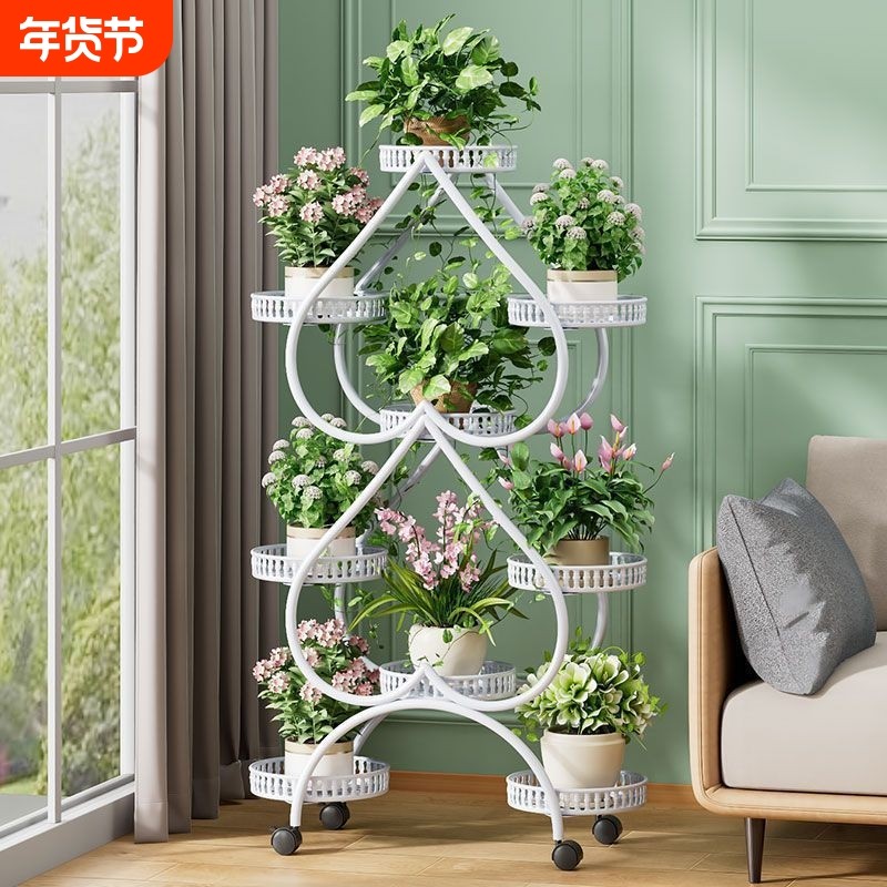 多层铁艺带轮花架可移动花盆架绿萝架阳台置物架室内艺术绿植摆放