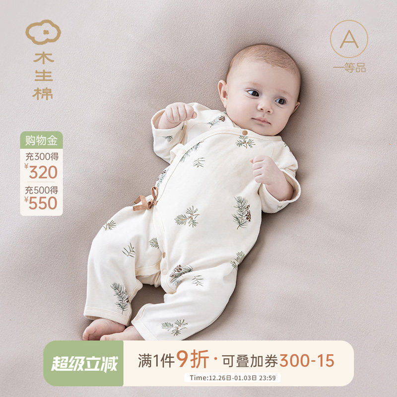 木生棉 0-6个月新生儿春秋连体衣宝宝纯棉长袖夏季和尚服婴儿哈衣