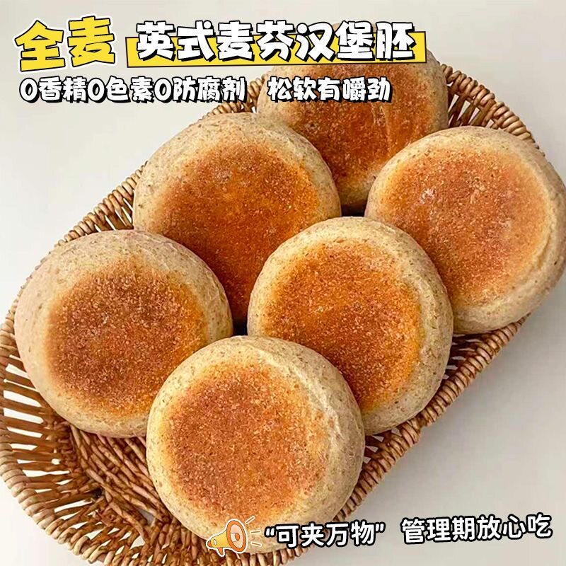 低脂英式全麦麦芬黑麦汉堡胚满分面包学生早餐宿舍零食品三明治