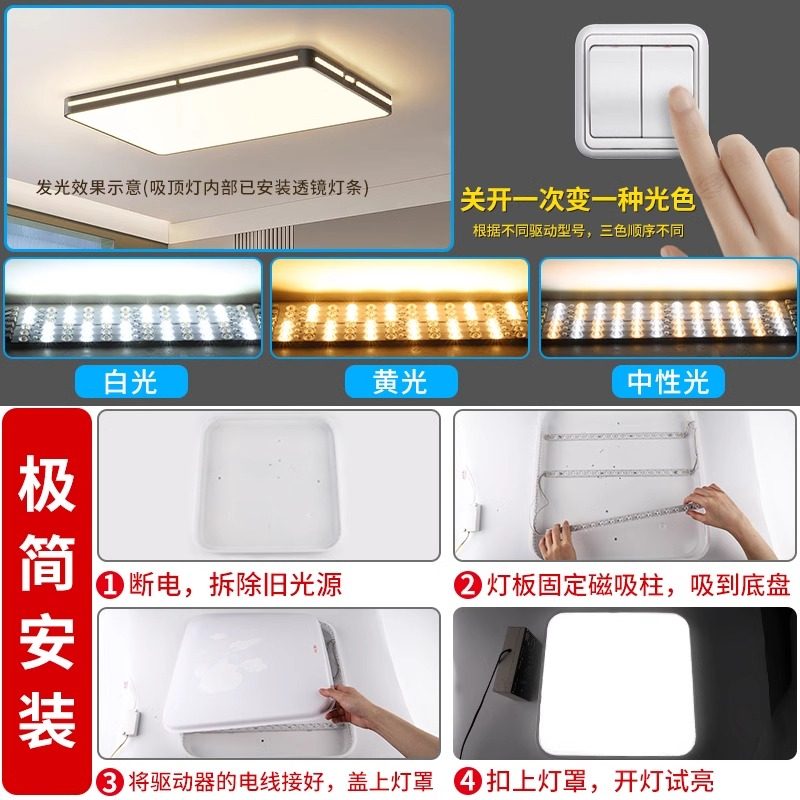 【全网】LED磁吸替换灯芯灯盘三色白光超亮改造模组安装简单