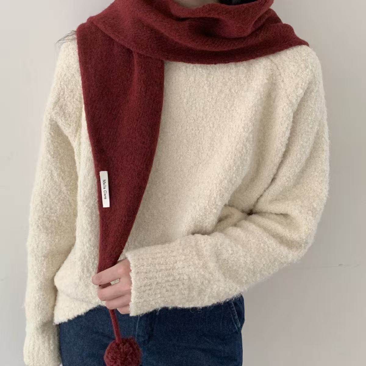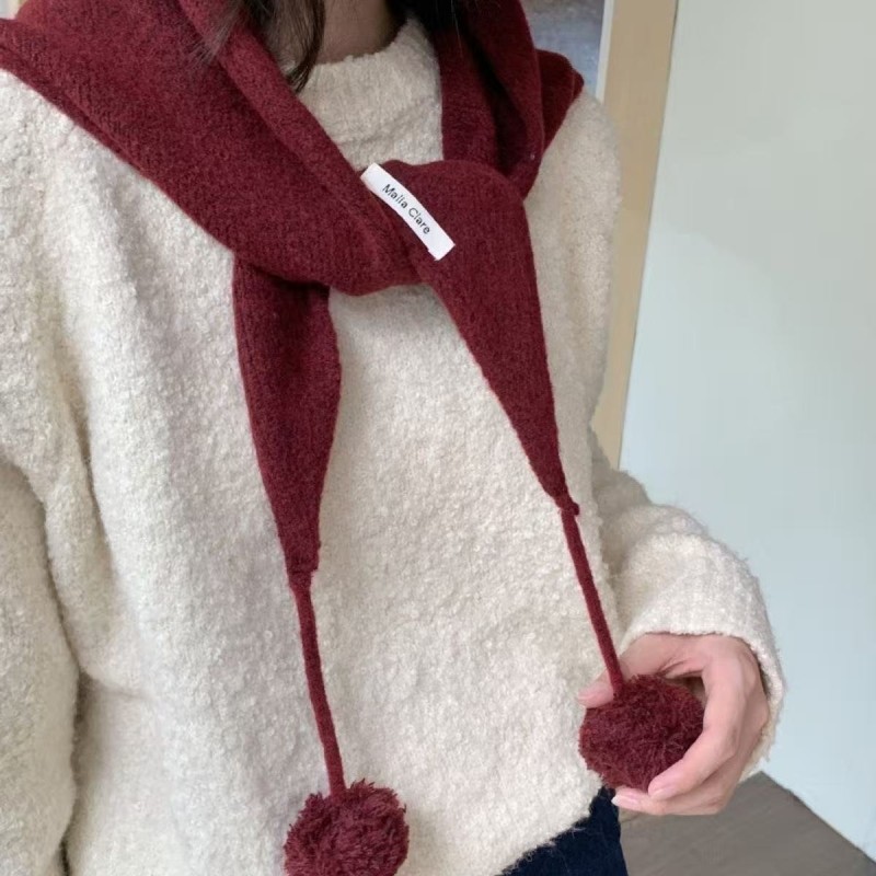 时尚百搭纯色2025可爱气质毛球日系早秋新款多功能三角披肩配饰