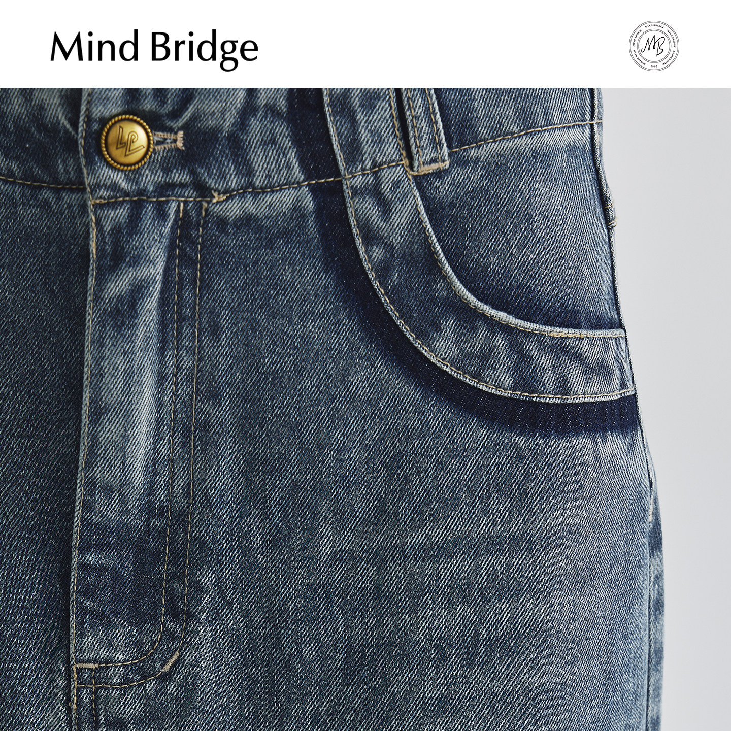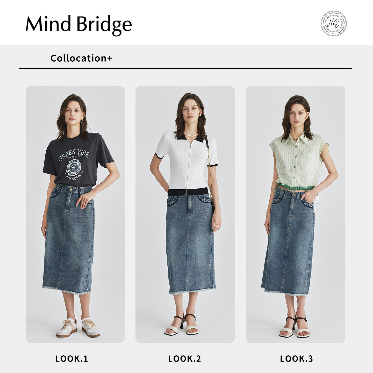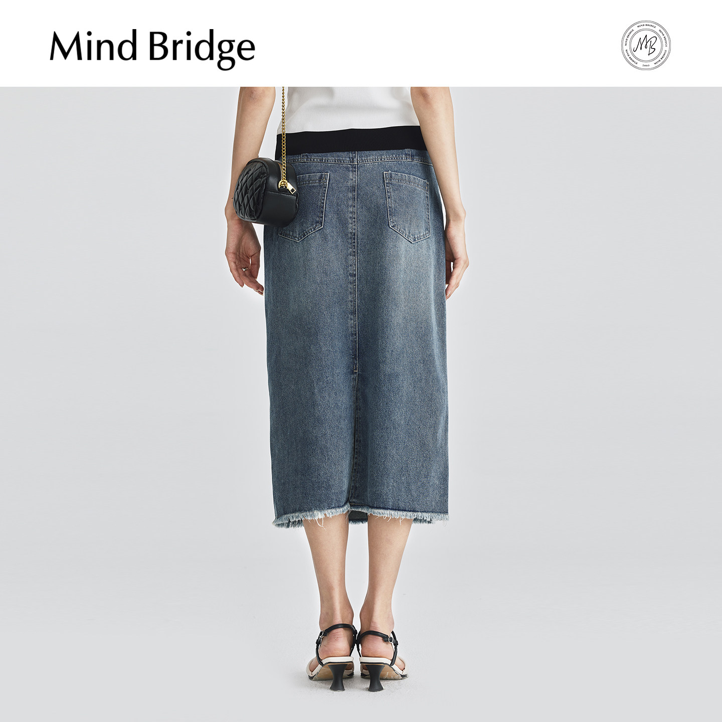 MB MindBridge夏季直筒半身裙时尚复古高腰牛仔裙女士流苏中长裙