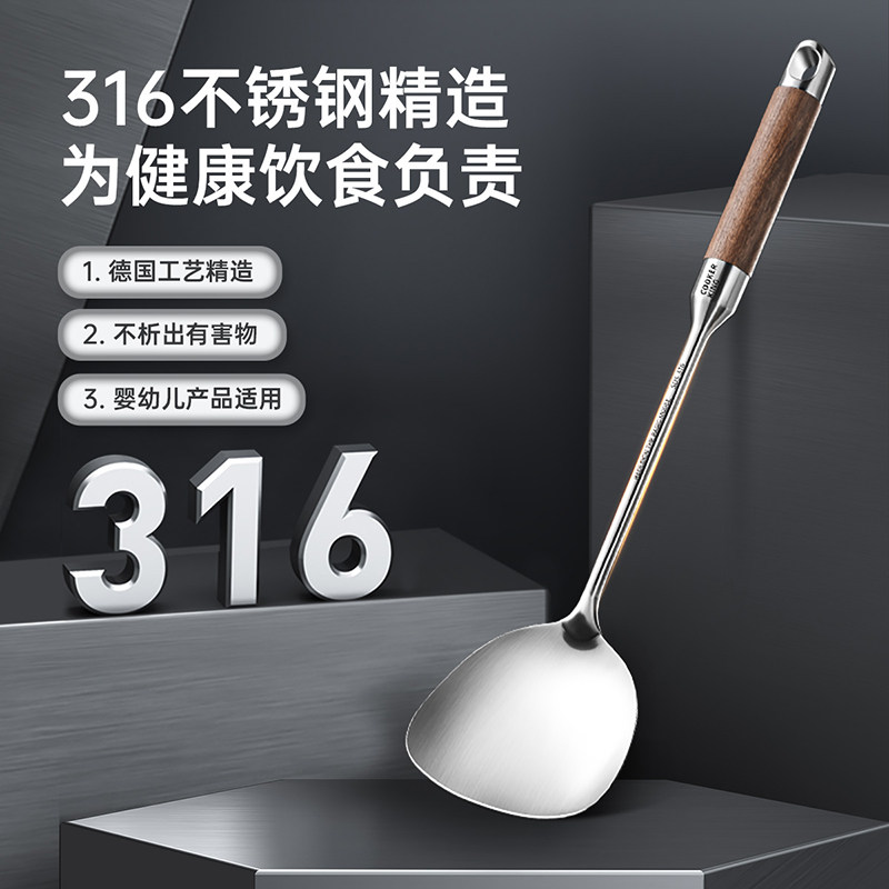 炊大皇316不锈钢锅铲炒菜铲子家用炒勺勺子厨房6件套加厚套装铲
