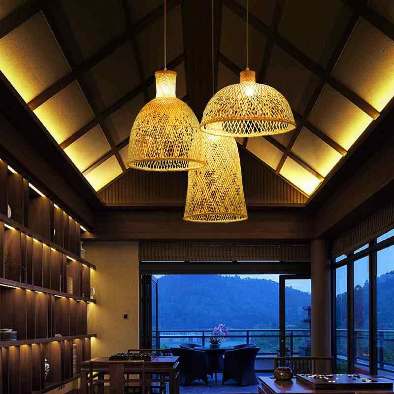 新中式吊灯禅意餐厅草帽灯罩艺术创意个性客厅茶室竹吊灯竹编灯