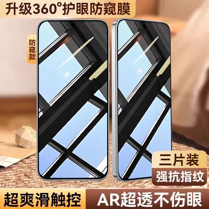 [不沾指纹]适用iPhone17/16钢化膜苹果15/14手机13promax防窥12全屏XR/xsmax全包11贴X防摔8por高清plus