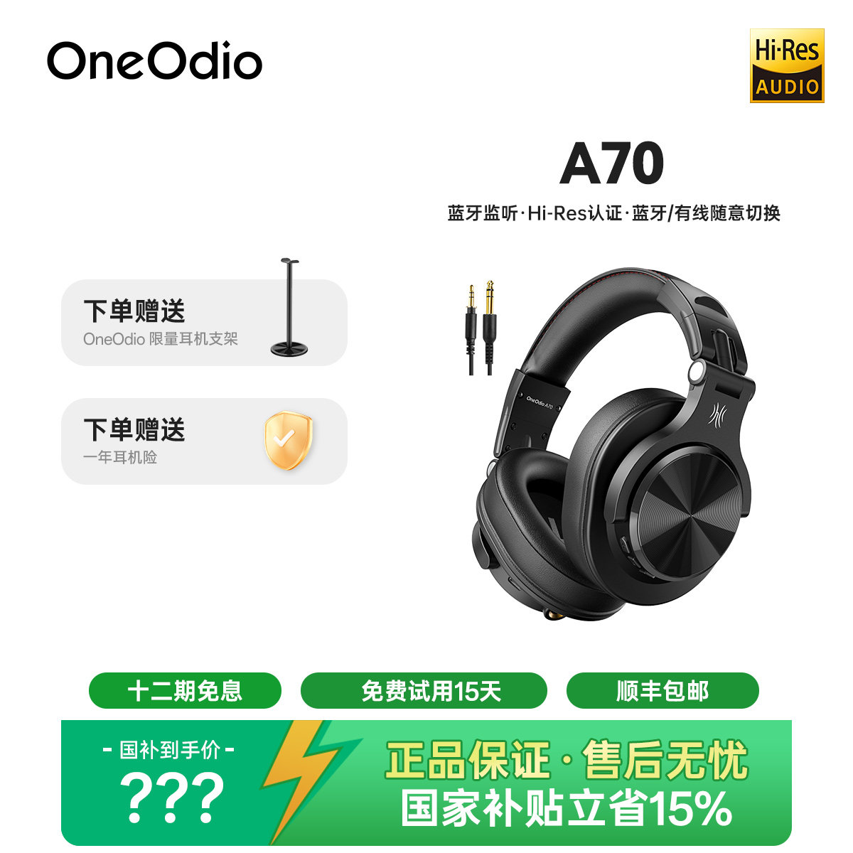 OneOdio A70头戴式无线监听蓝牙耳机hifi音质耳麦dj录音棚声卡