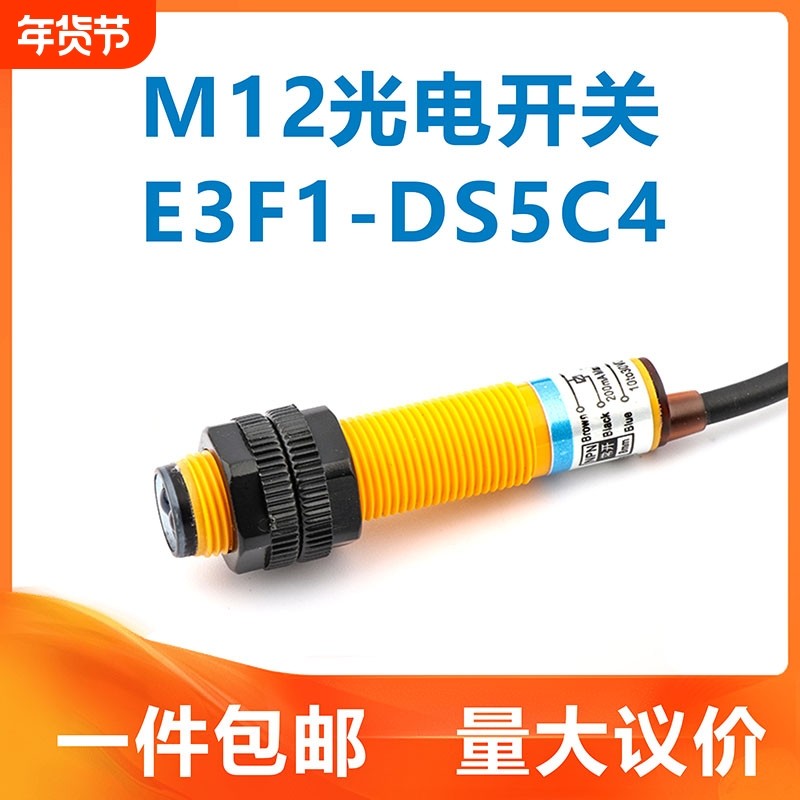 M12光电开关E3F1-DS5C4/C1漫反射限位传感器NPNP常开塑料外壳124V
