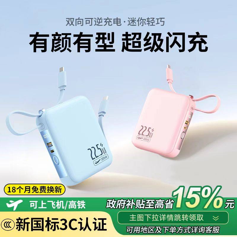 【充电宝3C认证可上飞机】政府补贴15%品胜mini小相机2025新款迷你超薄小巧便携自带线快充适用华为苹果小米