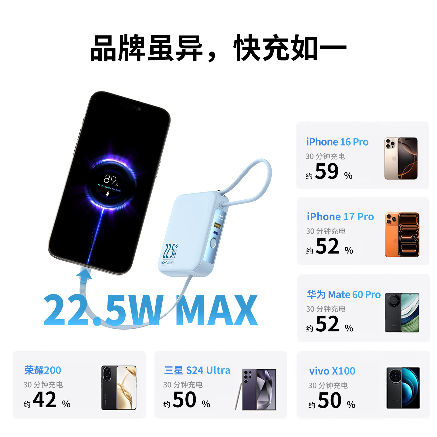 【充电宝3c认证可上飞机】倍思2025新款快充自带线小巧便携标大容量移动电源适用小米苹果17专用官方正品旗舰