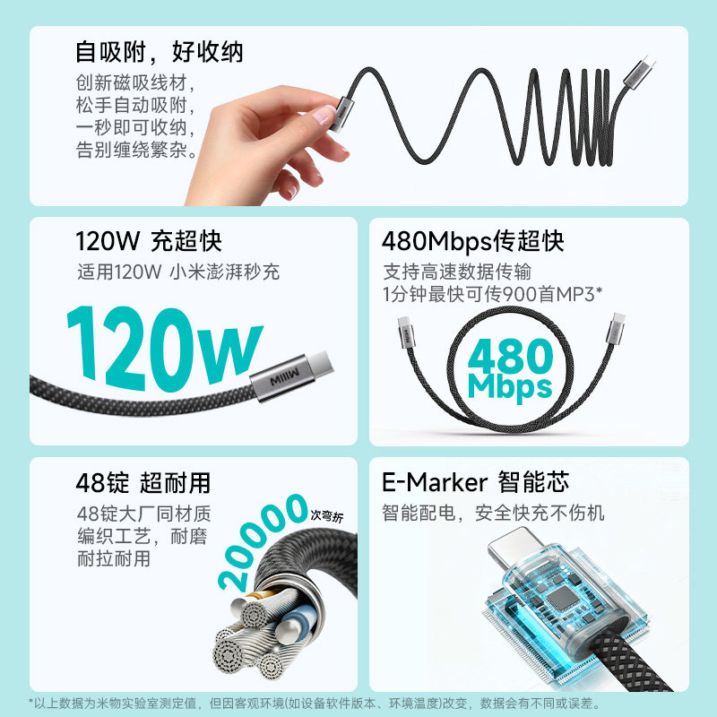 【新品上市】米物120W数据线磁吸充电线适用苹果iPhone17promax华为小米安卓typec手机电脑平板快充编织线6A