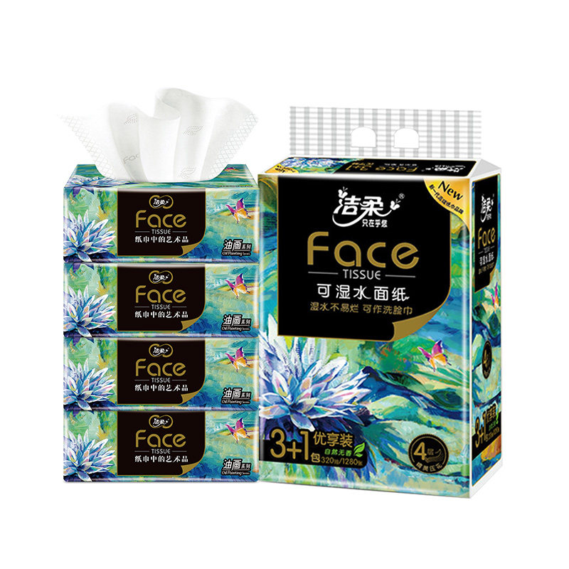 洁柔抽纸高端油画纸抽4层加厚实惠家用卫生纸可攒单油画抽纸攒单