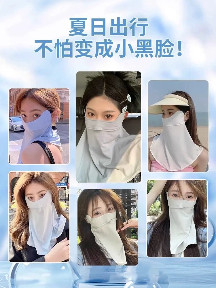防晒口罩遮脖子透气女防紫外线骑行冰丝全脸护颈面罩夏遮阳高颜值