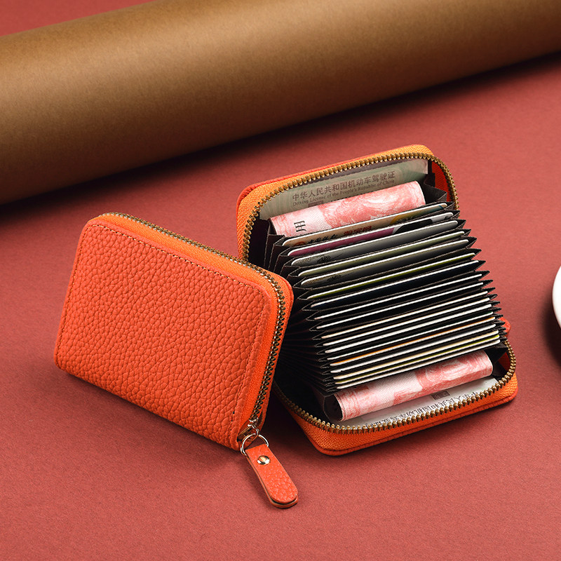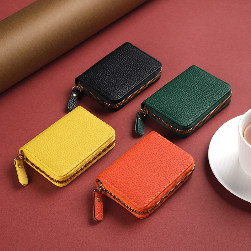 稻草人卡包女士新款证件女式牛皮小巧真皮拉链钱夹小众银行卡钱包