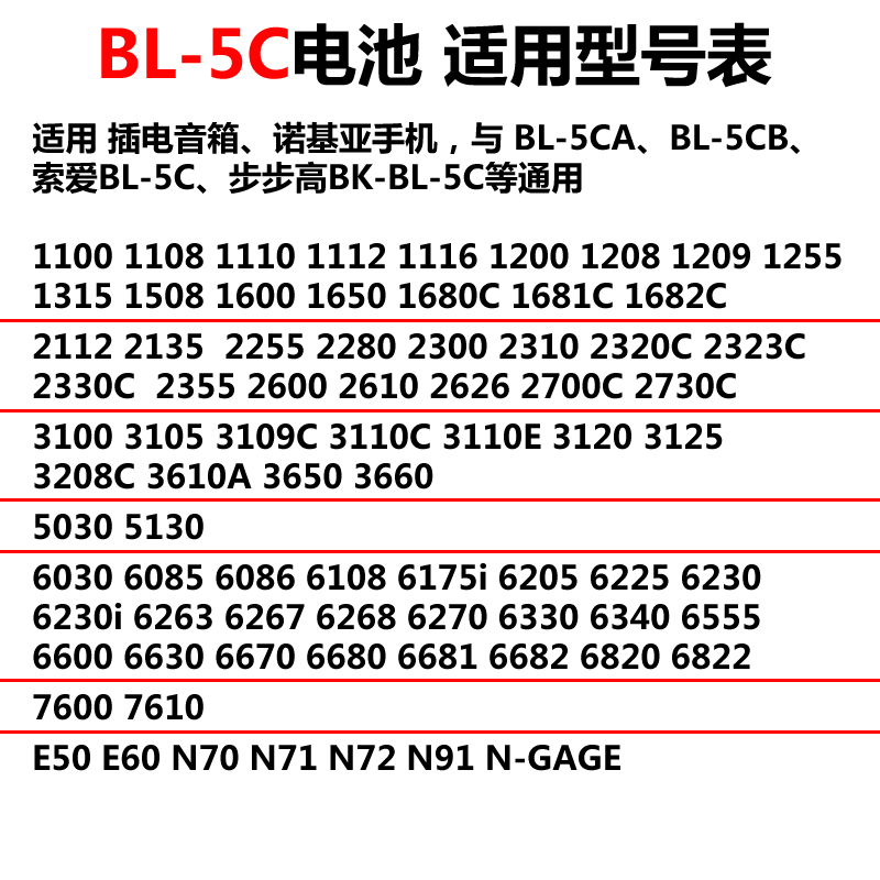 BL-5C播放器音箱电池破冰者伴你行米果电池1200诺基亚手机通用