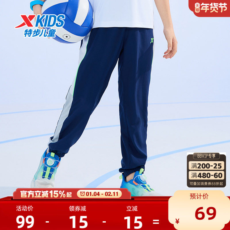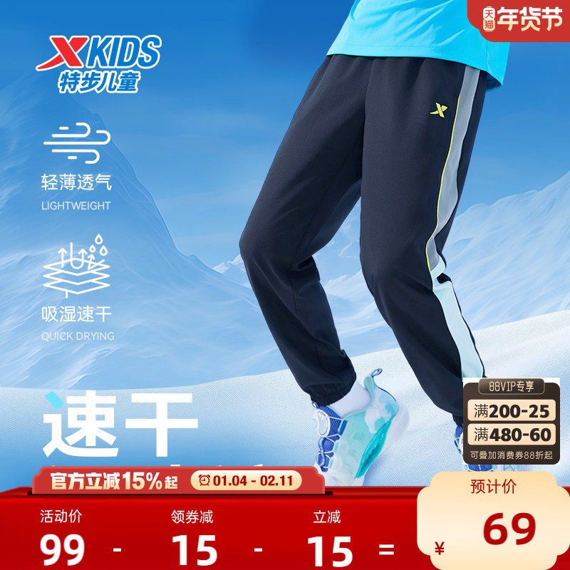 特步童装儿童速干运动裤男童裤子2025夏季新款中大童防蚊长裤夏装