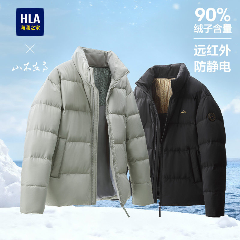 HLA/海澜之家山不在高系列羽绒服25秋冬新款石墨烯无帽立领外套男