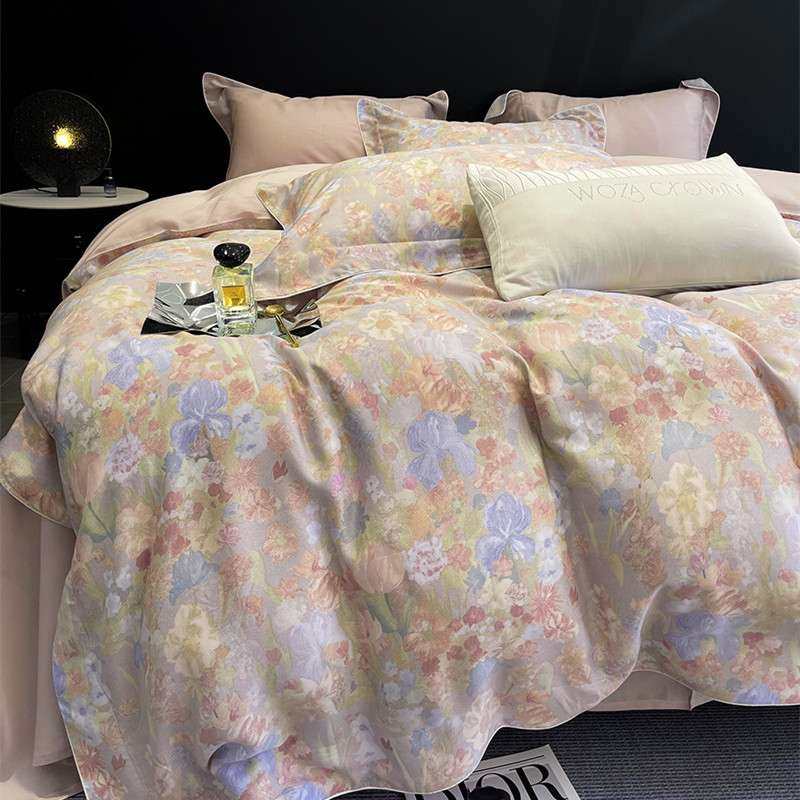 100支天丝四件套夏季床上冰丝凉感丝滑裸睡床单被套高端床品床笠