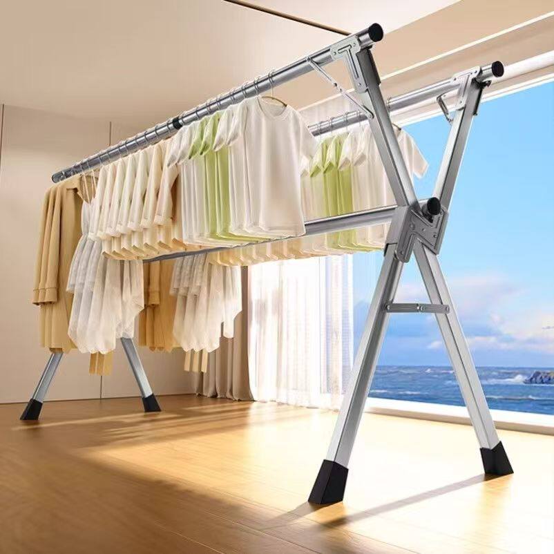 晾衣架落地家用卧室挂衣服简易室内凉衣杆折叠阳台伸缩晒衣帽架子