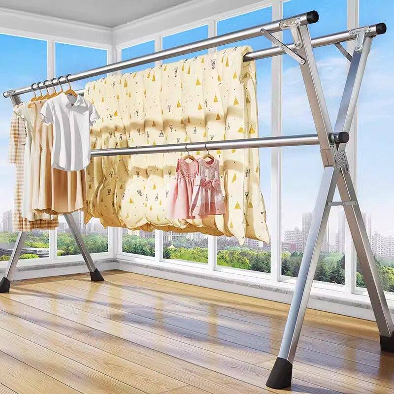 加粗加厚落地折叠晾衣架室内阳台卧室挂衣架室外被子架钢管可伸缩