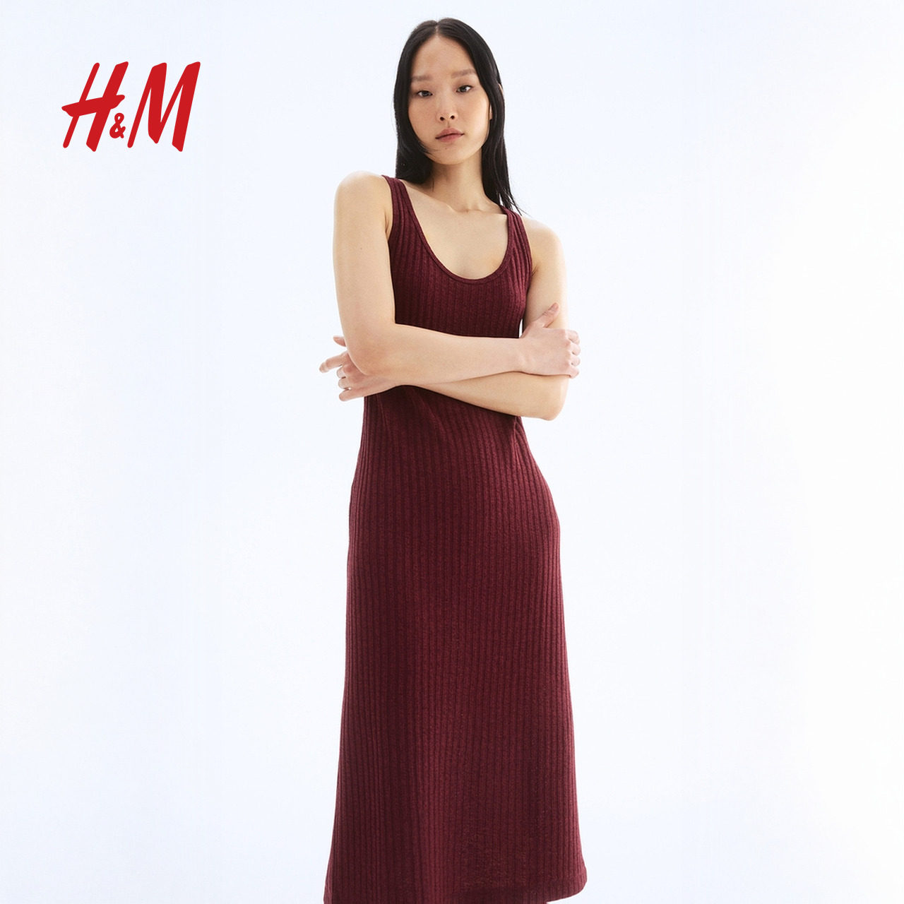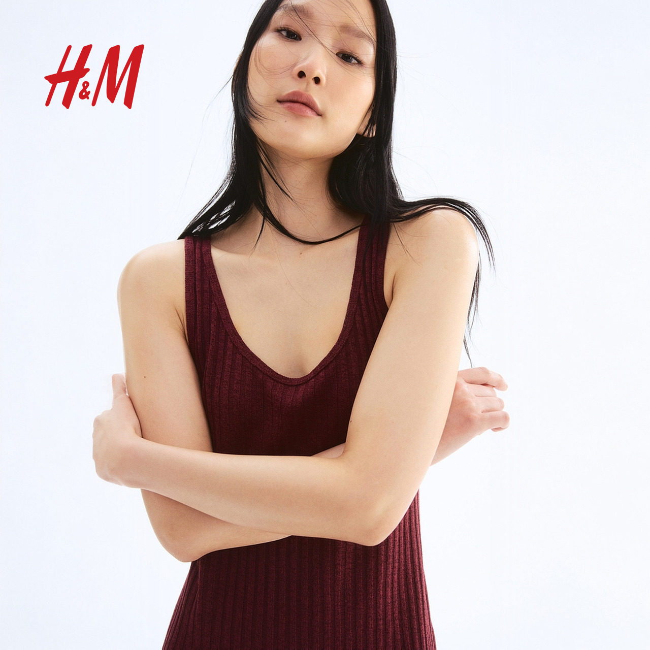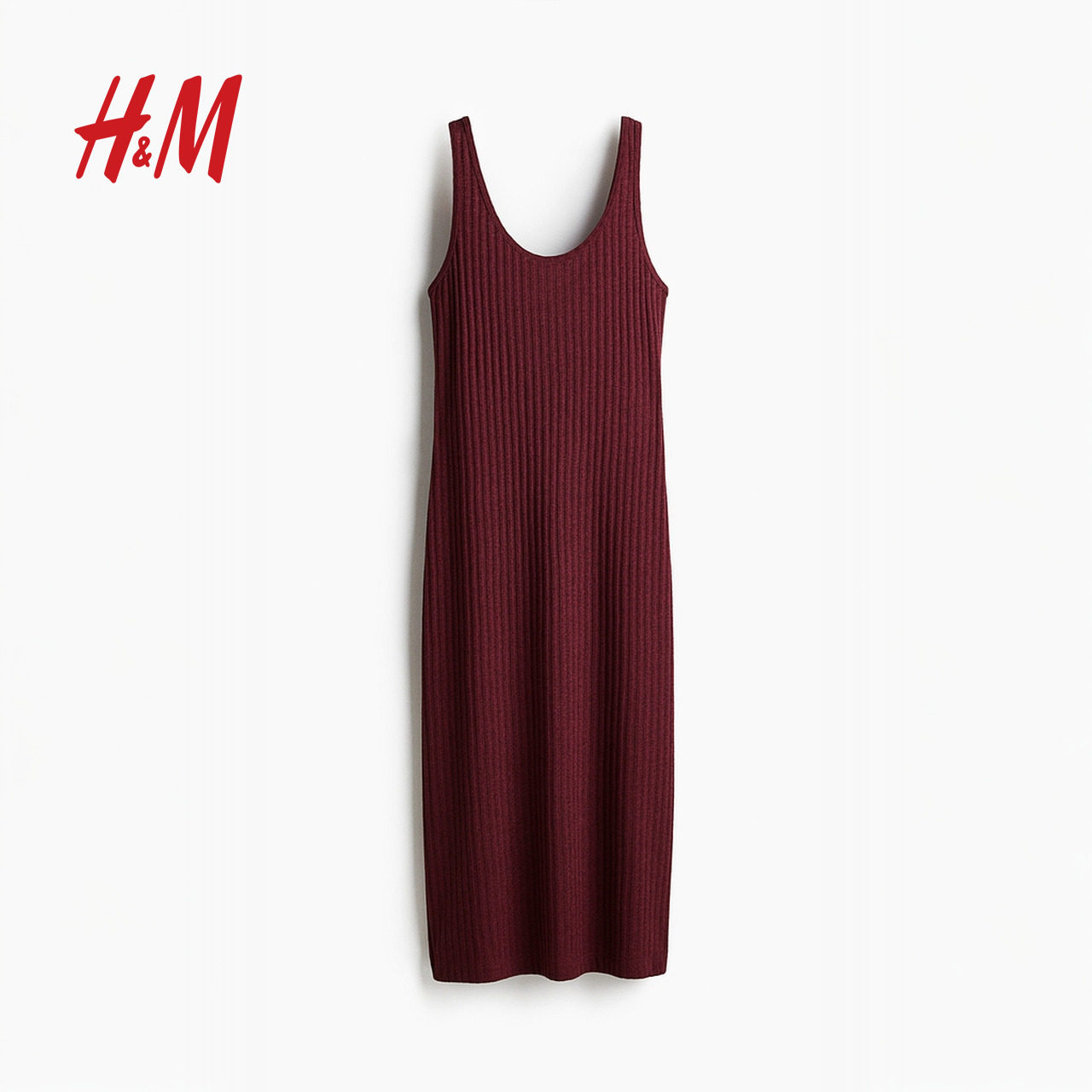 HM女装背心吊带连衣裙2025冬季新款新款露背针织连身裙1290595