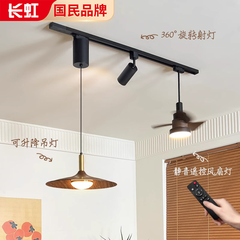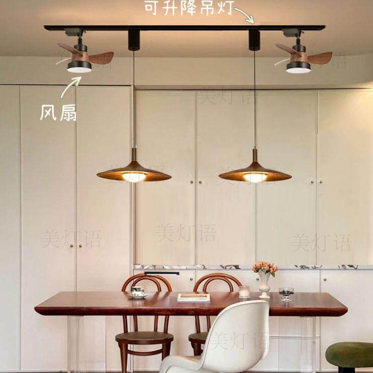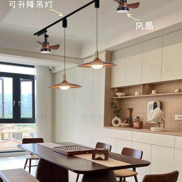 可升降可移位轨道风扇灯餐厅吊灯中古风复古原木风南洋风餐厅吊灯