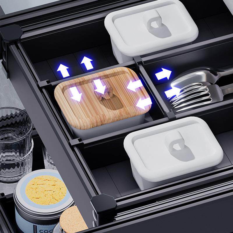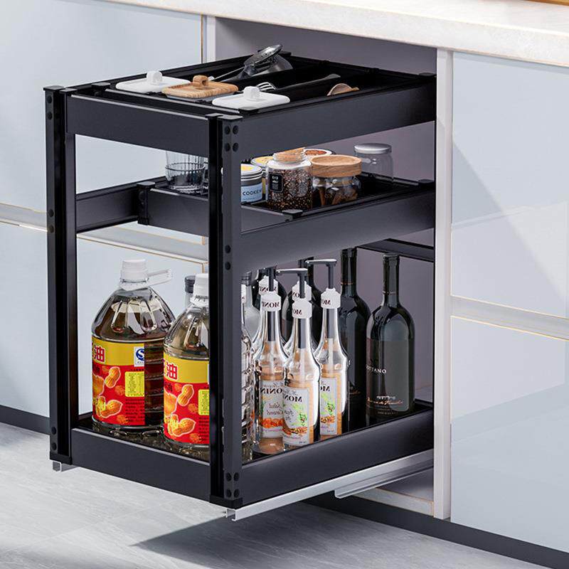 库博新款厨房调味料拉篮轻奢太空铝合金抽屉式工具篮橱柜三层拉篮