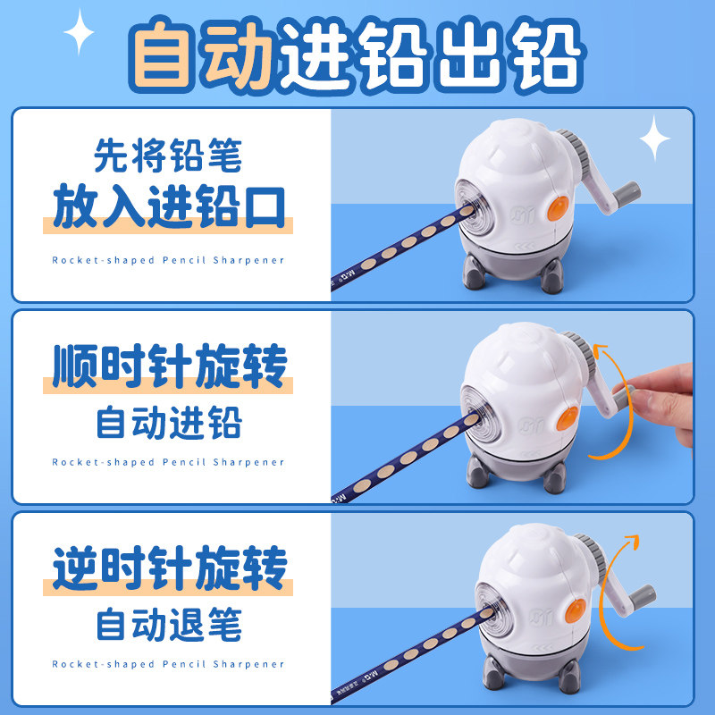 晨光火箭削笔刀卷笔刀转笔刀削笔器铅笔刀小学生专用儿童素描自动进铅手摇多功能美术刨笔机简约卡通旋笔刀