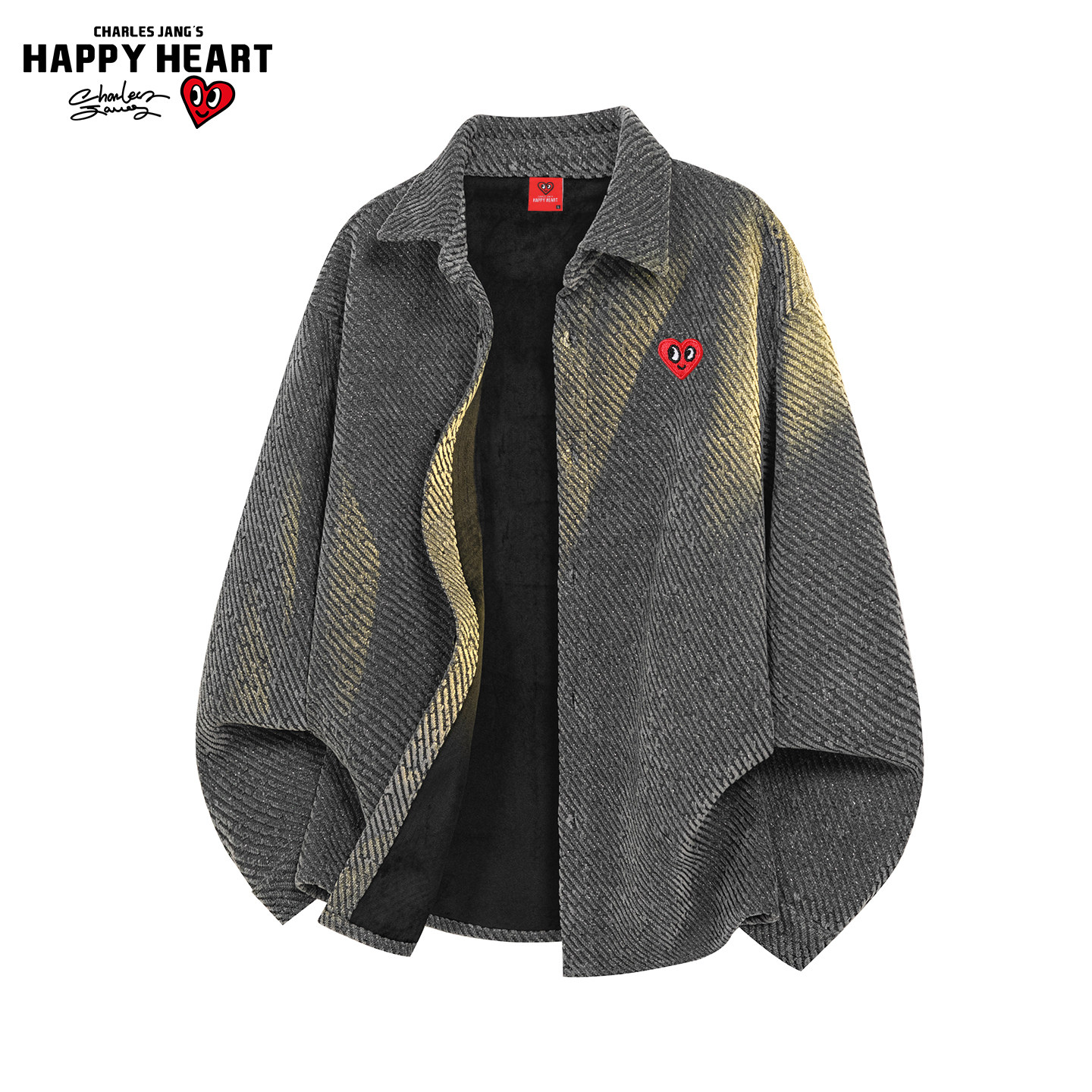 查尔斯桃心美式复古回纹肌理感加绒夹克男女冬季防风保暖开衫外套