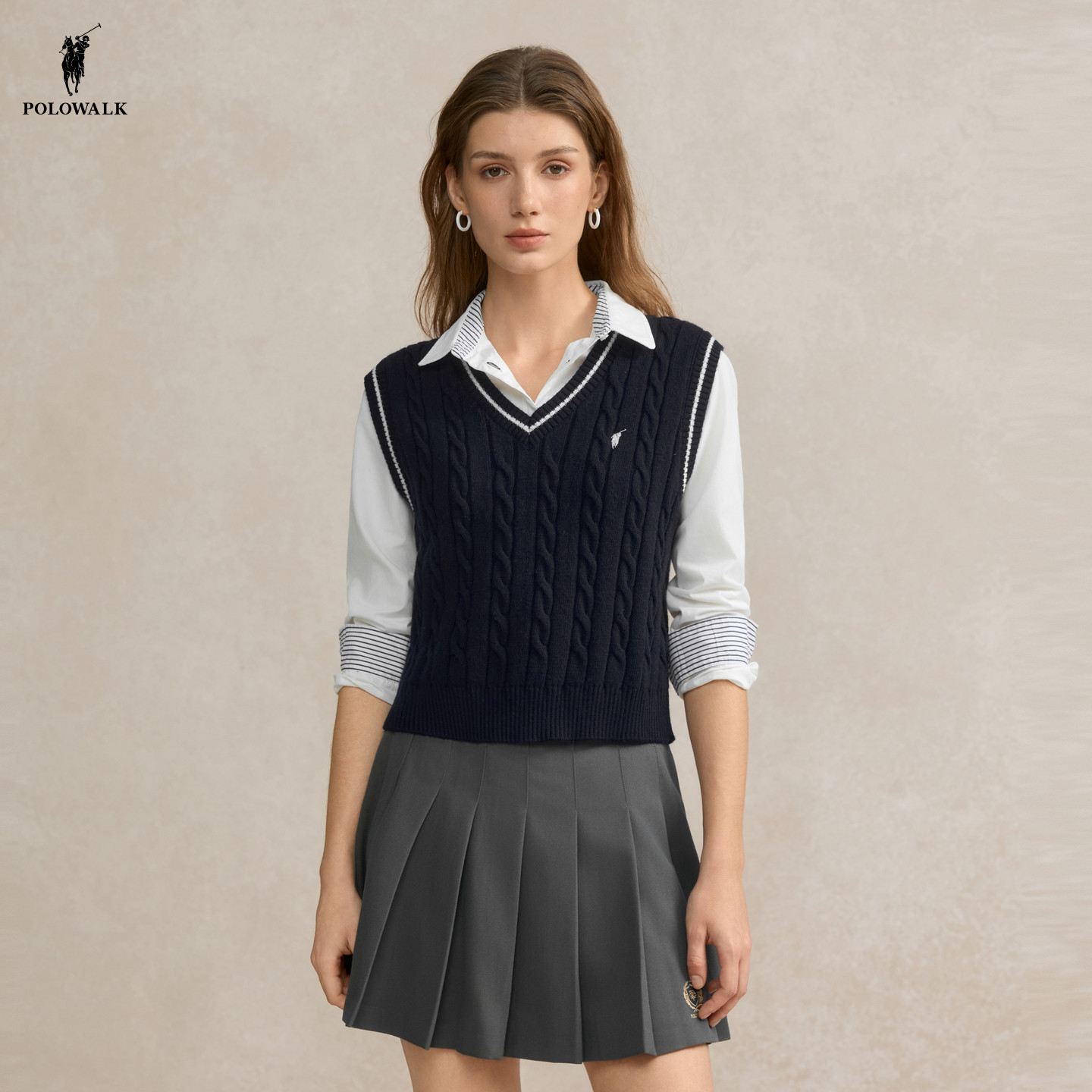 【特惠】POLOWALK女士针织背心2026春季新款绞花针织坎肩韩版马甲