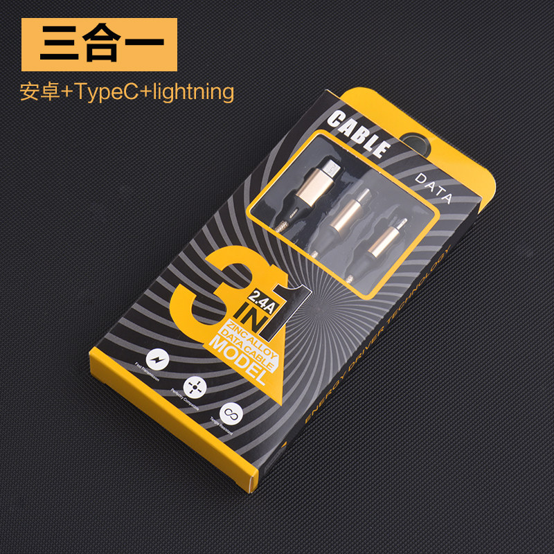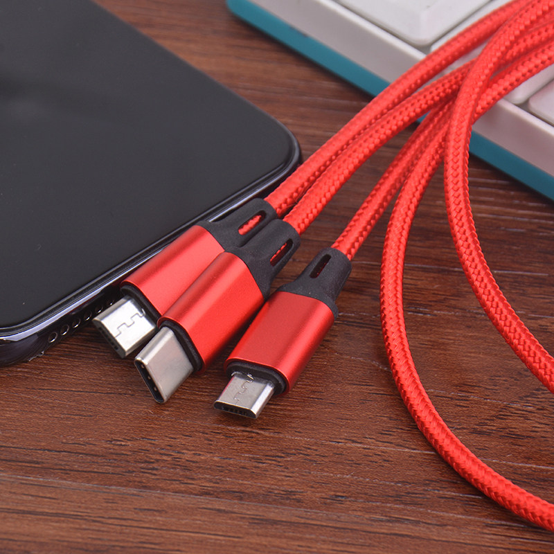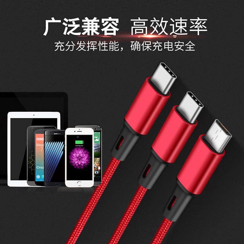 适用iPhone安卓Type-c三合一合金尼龙一拖三手机2A充电数据线定制