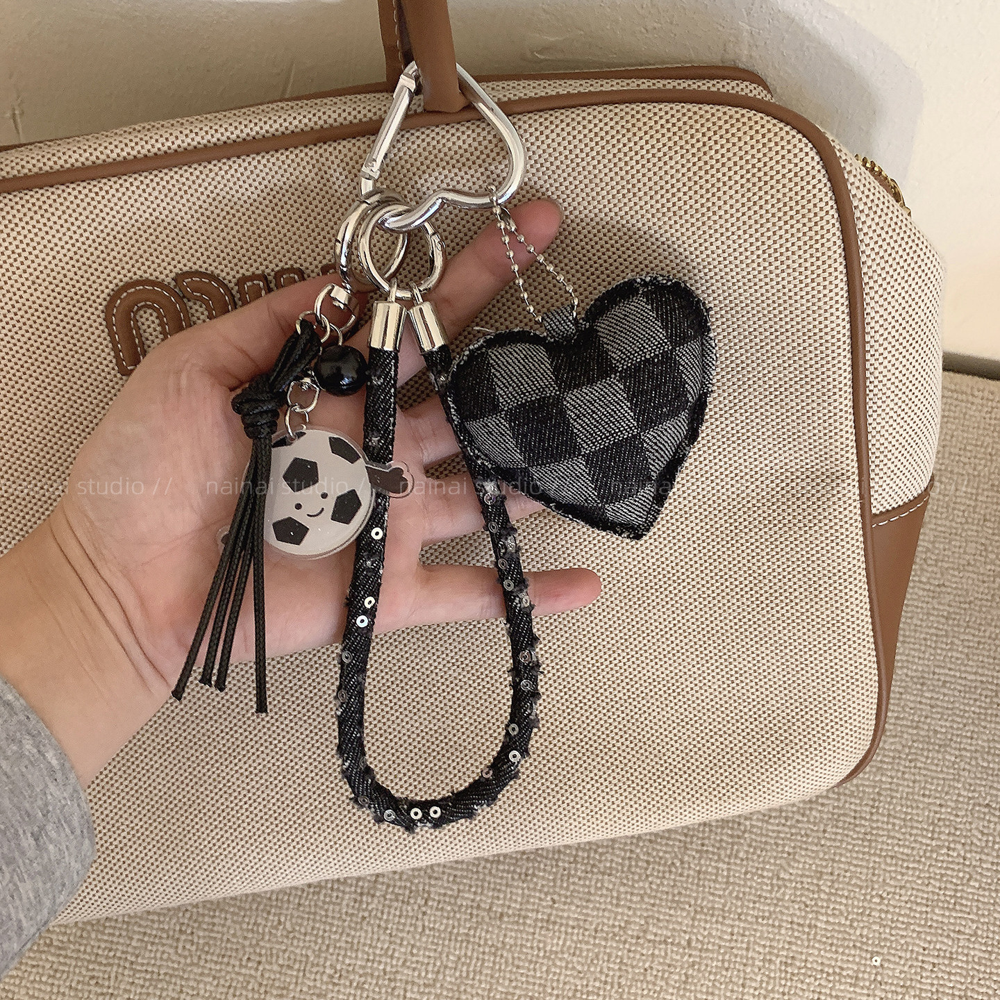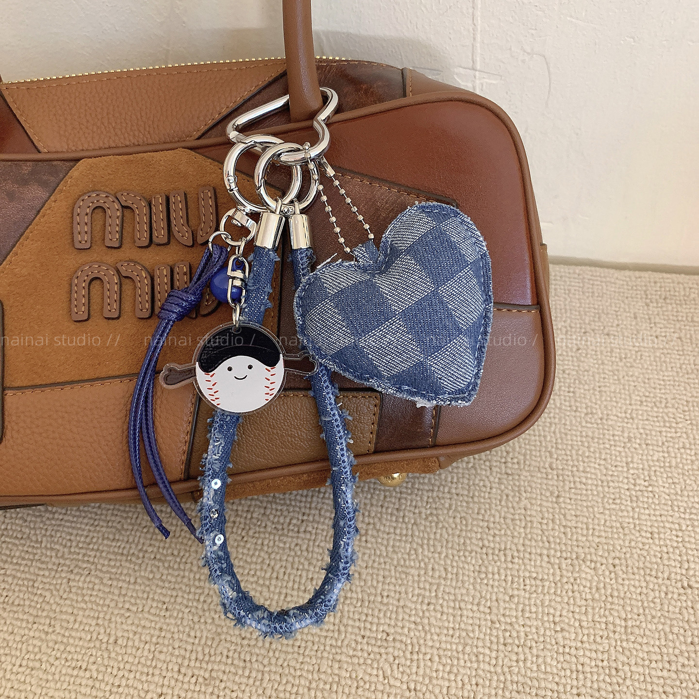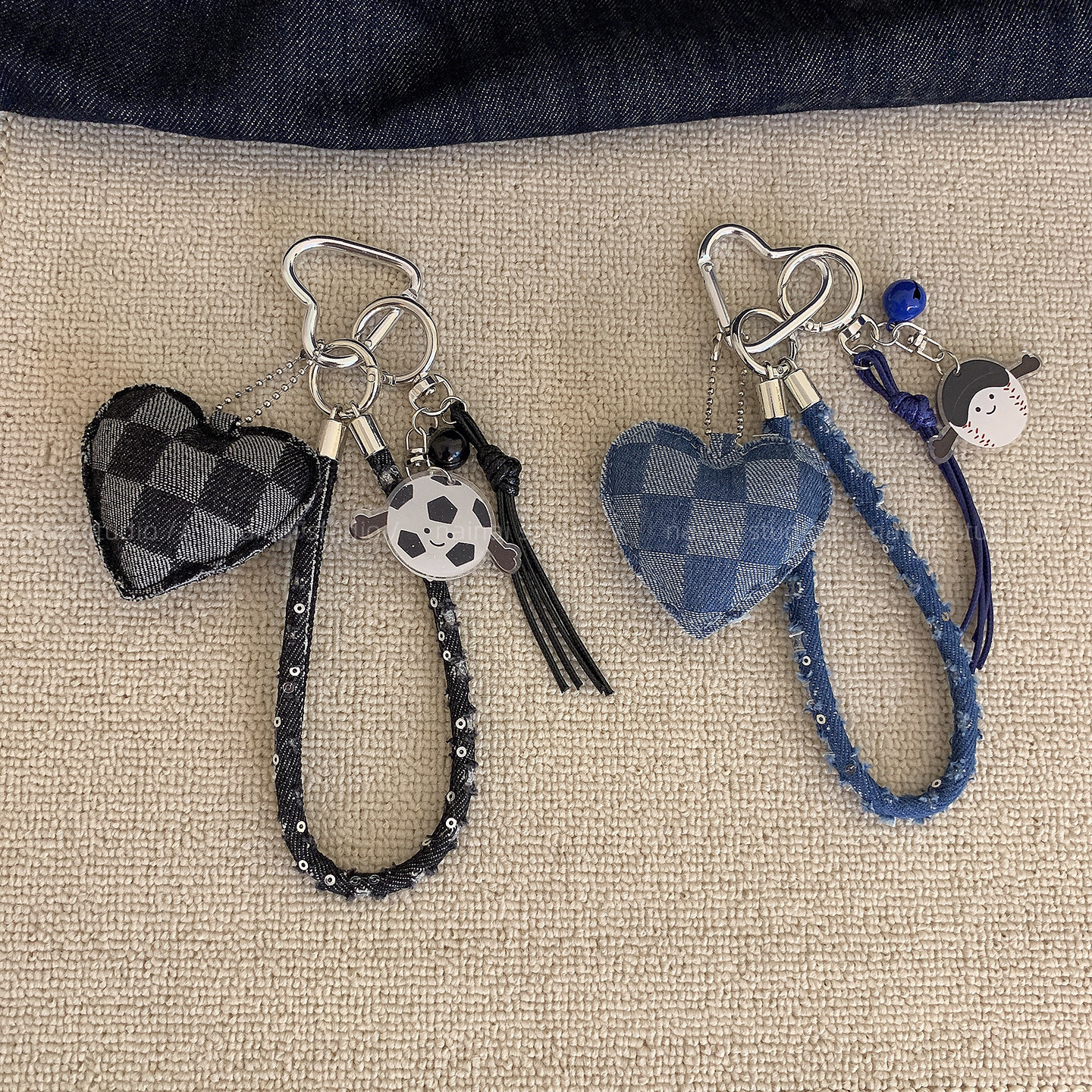 牛仔爱心挂件~格纹立体复古时髦书包挂饰包包车钥匙扣繆系配饰女