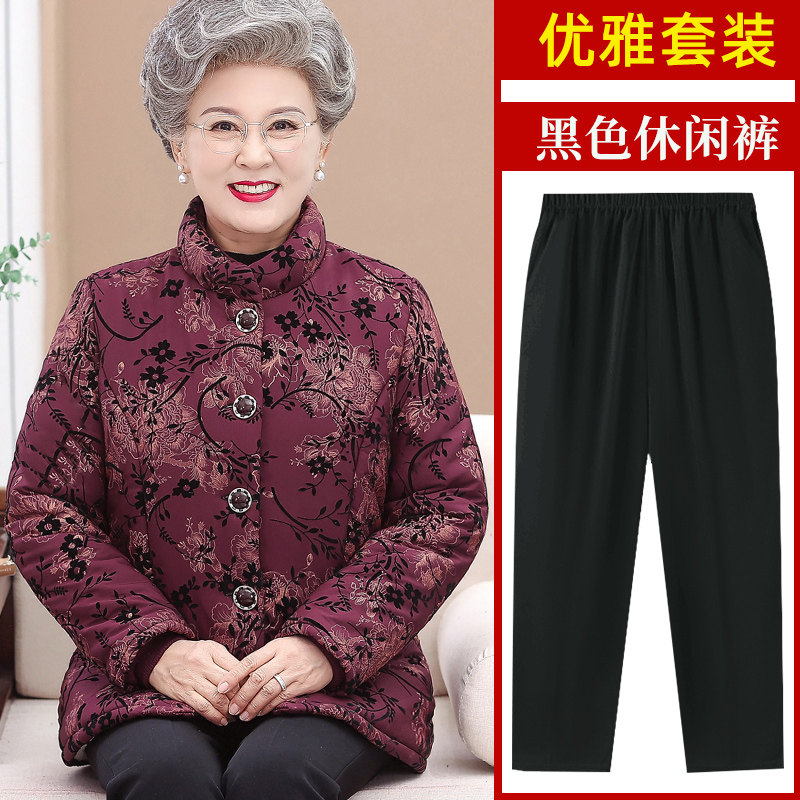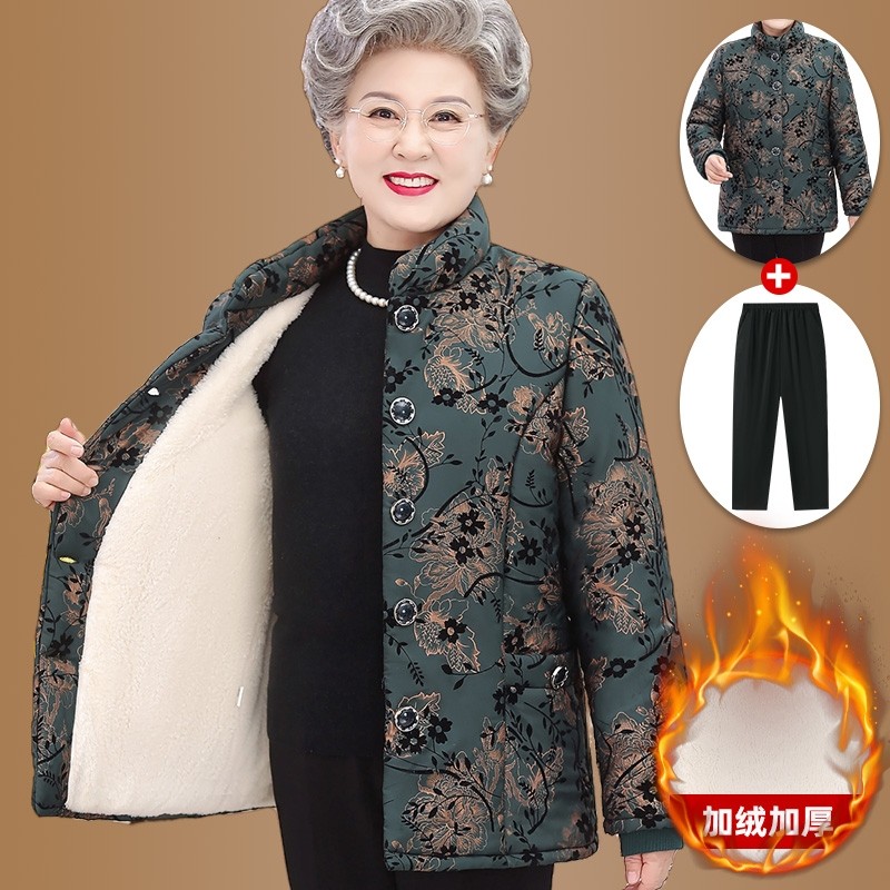 奶奶冬装棉袄加绒加厚女外套中老年人妈妈装保暖棉衣老人棉服洋气