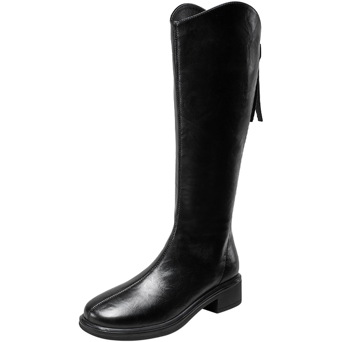 意尔康女鞋秋冬季长靴不过膝高筒靴瘦瘦靴单靴粗跟骑士靴休闲皮靴