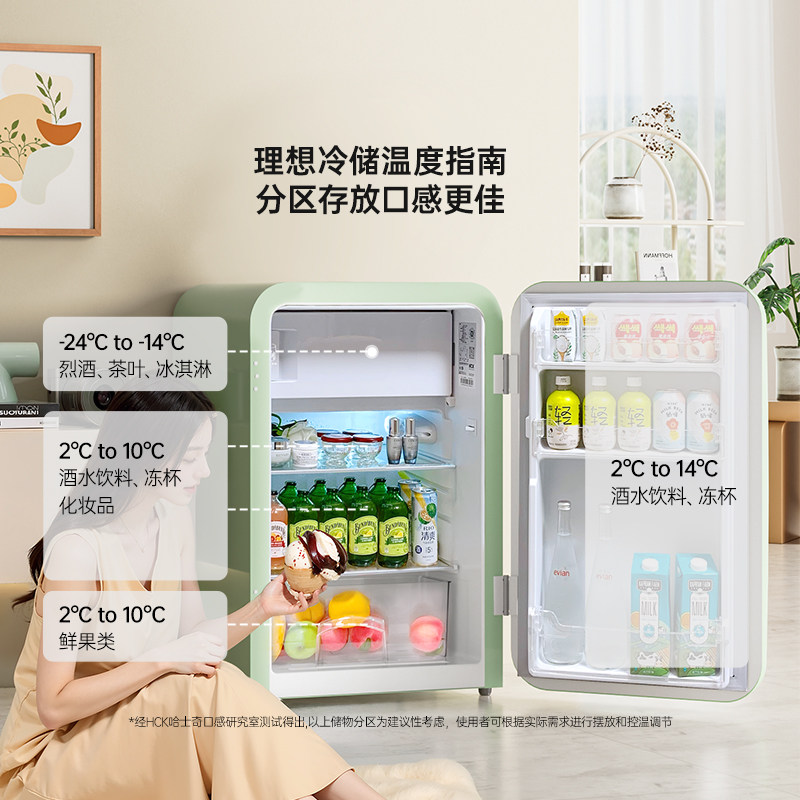 HCK哈士奇107L复古冰箱高颜值小型家用冷冻冷藏客厅办公室民宿