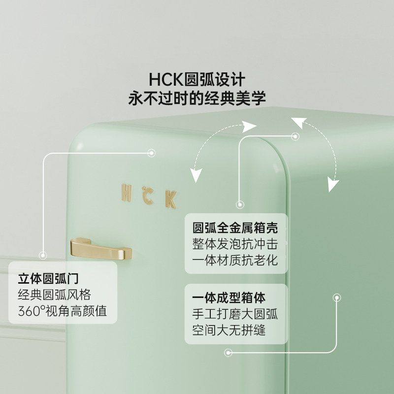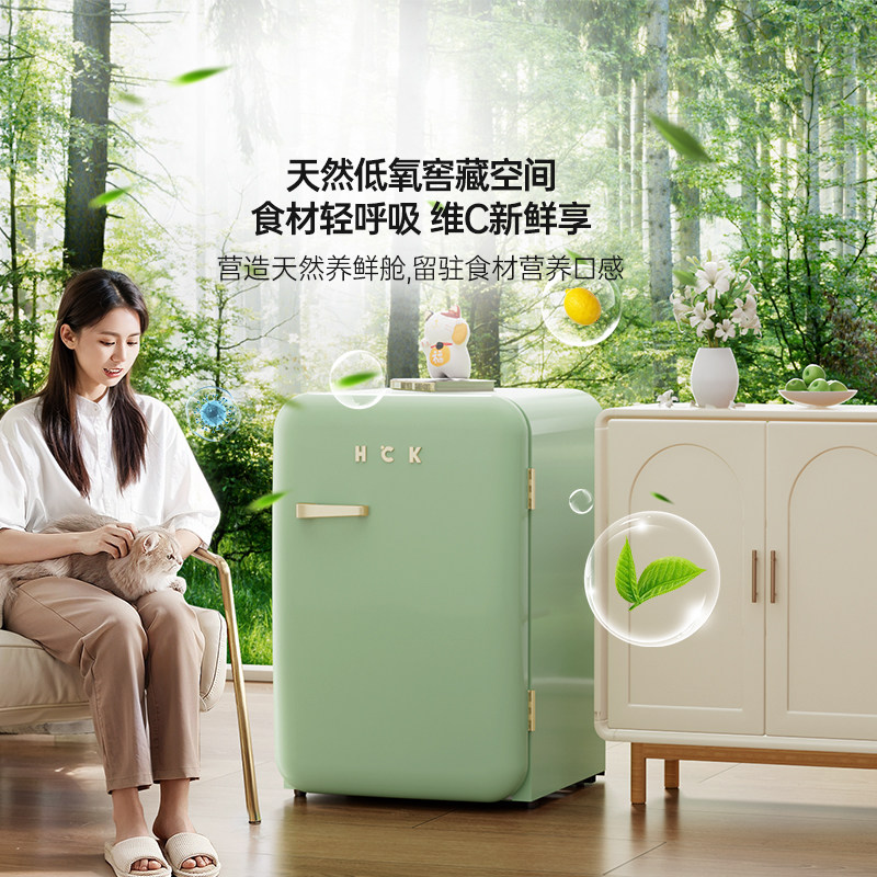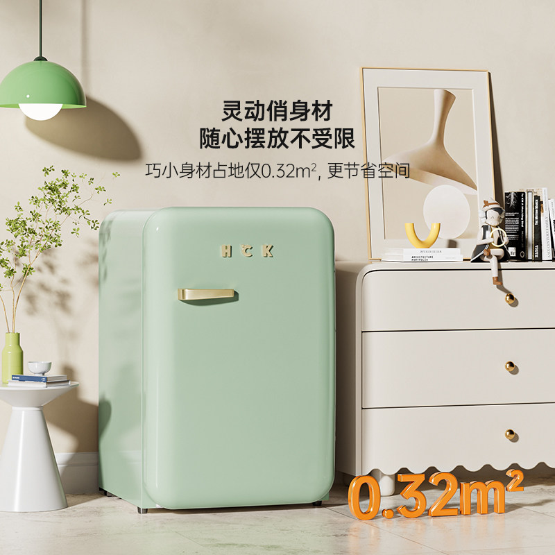 HCK哈士奇复古冰箱107L冷冻冷藏小型高颜值单门家用静音网红节能