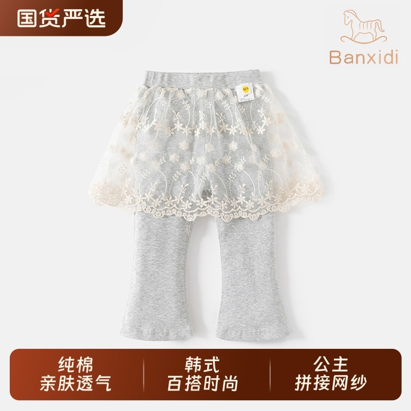 班喜迪女童裙裤秋装2025新款秋季洋气女宝宝网纱微喇裤儿童打底裤